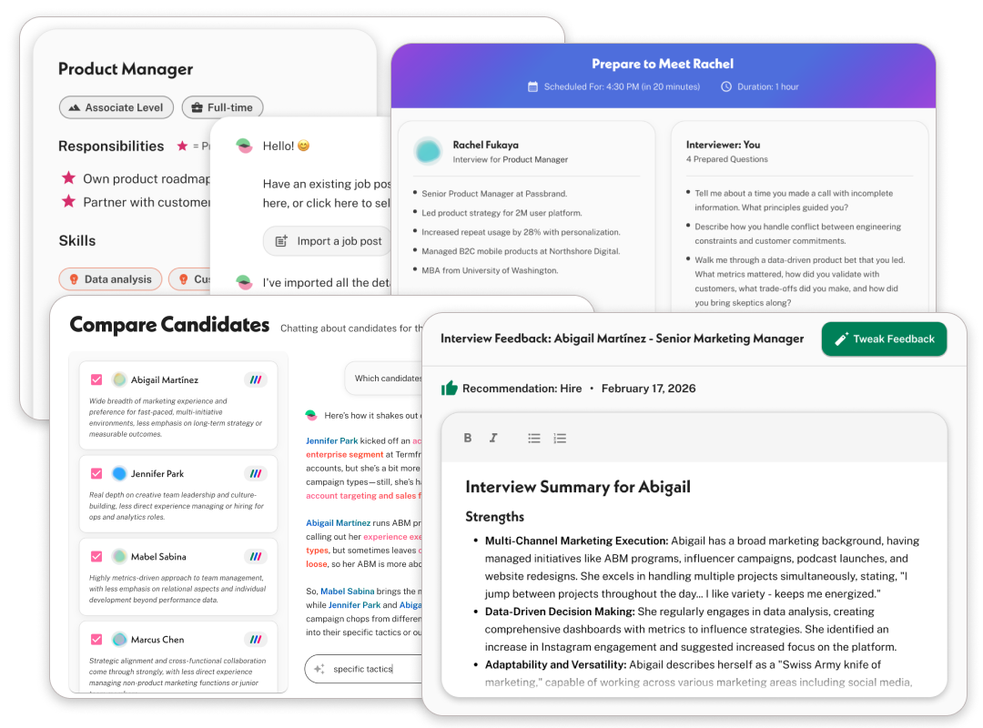 From getting aligned with the hiring manager upfront to running excellent structured interviews to crafting comprehensive candidate comparisons, Lavalier optimizes every step of the interview process for identifying exactly who to hire.